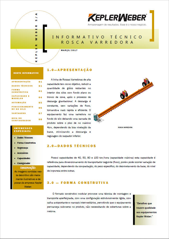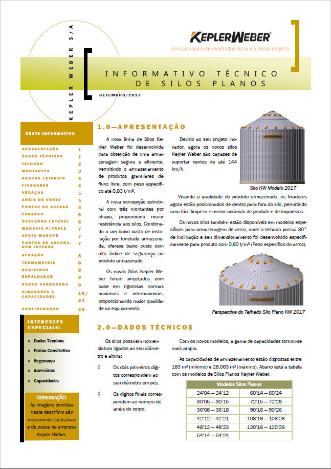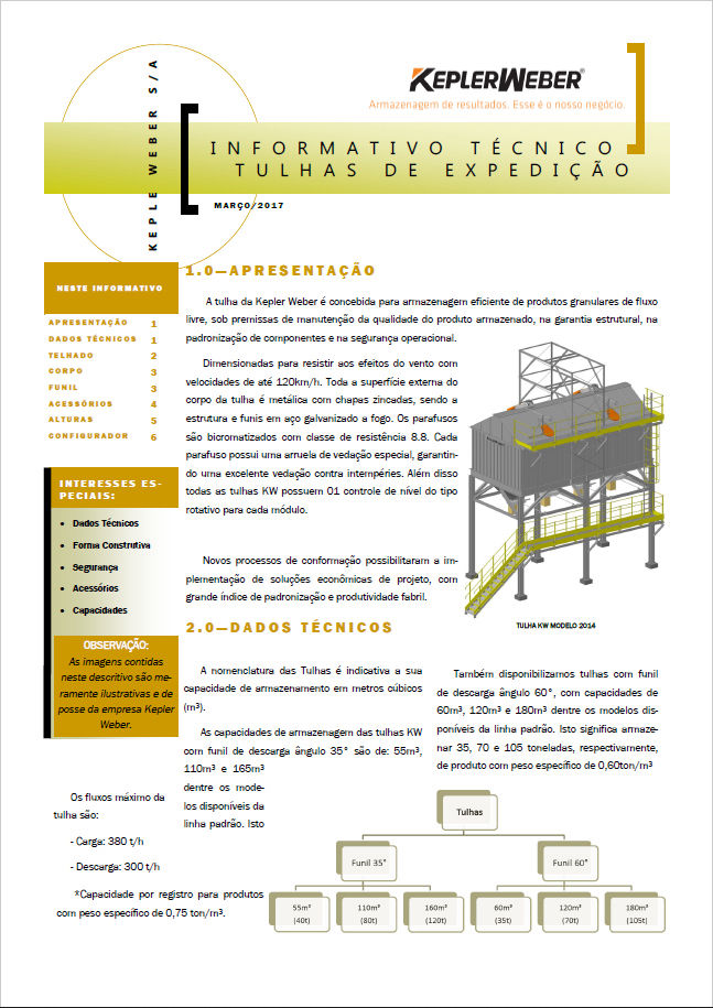 Los contenedores Kepler Weber están diseñados para el almacenamiento eficiente de productos granulares de flujo libre bajo el supuesto de mantener la calidad del producto almacenado, la garantía estructural, la estandarización de los componentes y la seguridad operativa.