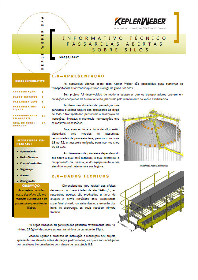 Las pasarelas de silo abierto Kepler Weber están diseñadas para soportar transportadores horizontales que cargarán granos en el silo.